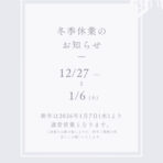 2025/12/26早いもので2025年も終わりが近づいていますね。 今年はどんな1年でしたでしょうか? 当店は12/27(土)から2026年1/6(火)まで休業とさせていただきます。 新年は2026年1月7日(水)より通常営 …
